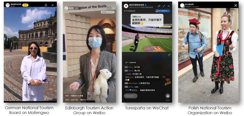 While there are many different live streaming platforms, those most commonly used by overseas tourism boards are WeChat Channels, Weibo, and Mafengwo.