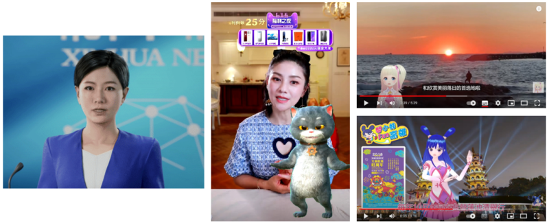 Virtual hosts Xin Xiaowei (Xinhua News), Banbu Cat (e-commerce), Nicole and Yameme (travel vtubers)