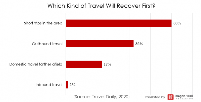 The travel industry expects that recovery will start with short trips taken to nearby locations, such as a weekend just outside the city where one lives. However, around one-third predict that outbound travel will recover quickly. Inbound travel is seen by nearly everyone as the segment that will recover last.