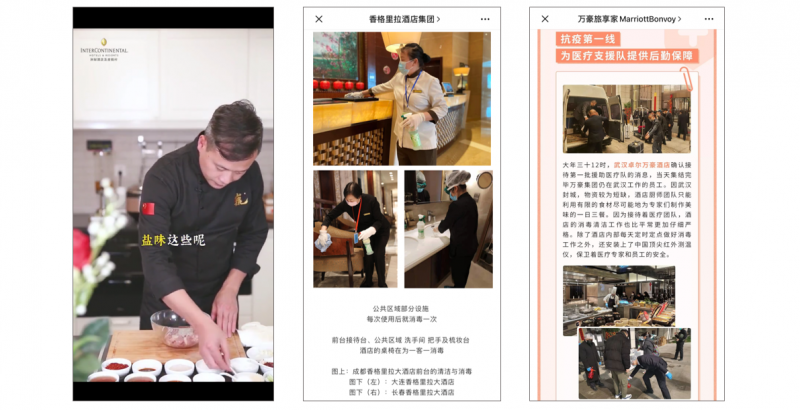 International hotels have used WeChat for a variety of communications strategies throughout the unfolding coronavirus crisis, starting with information on cancellations, and then evolving into engaging content to offer services to local residents, support guests and medical workers, and teach WeChat followers how to cook and keep fit at home. For more information on hotels’ WeChat communications during this period, please read our article on lessons from international hotels in China, or watch our April 15 webinar on what hotels around the world can do during COVID-19.