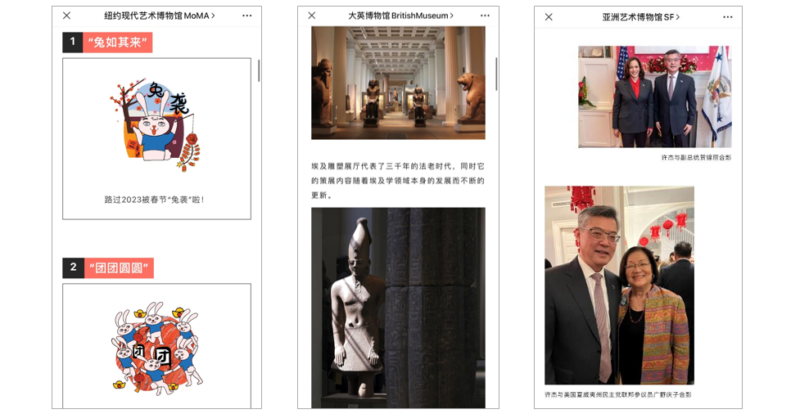 San Francisco’s Asian Art Museum had a particularly strong quarter. Their director, Xu Jie, traveled to Washington DC to be part of the consulting committee on the proposal to open a National Museum of Asian Pacific American History and Culture. This article received more than 5,000 views and lots of positive support. Other top museum articles include a post on Ancient Egyptian history from the British Museum, an article on the role of curators by the Museum of Modern Art (MoMA), and WeChat stickers, also from MoMA.
