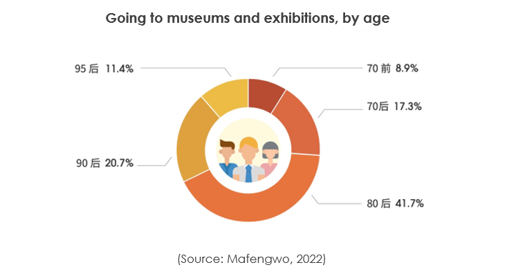 The report found that – unsurprisingly – Mafengwo users born in the 1980s through the late 90s were those most likely to attend a music festival in 2022. Users who went to museums and exhibitions skew older, with those born in the 80s and before accounting for 67.9%.