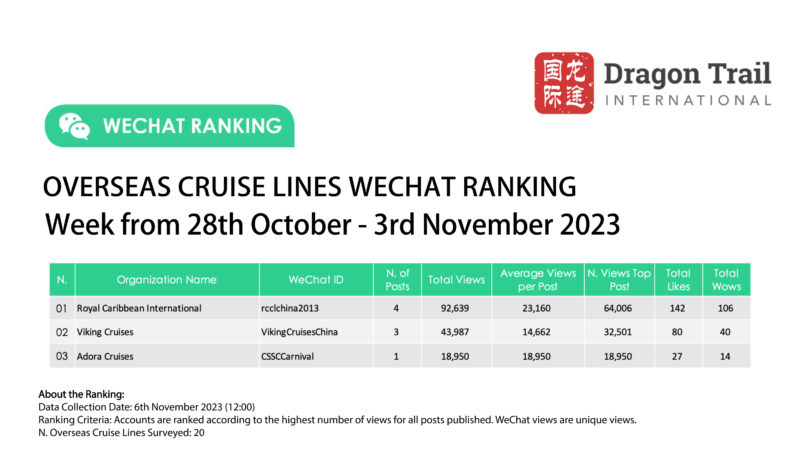 WeChat Weekly Rankings: Destinations, Airlines, Cruises, Attractions and Hotels – 28 October-3 November 2023