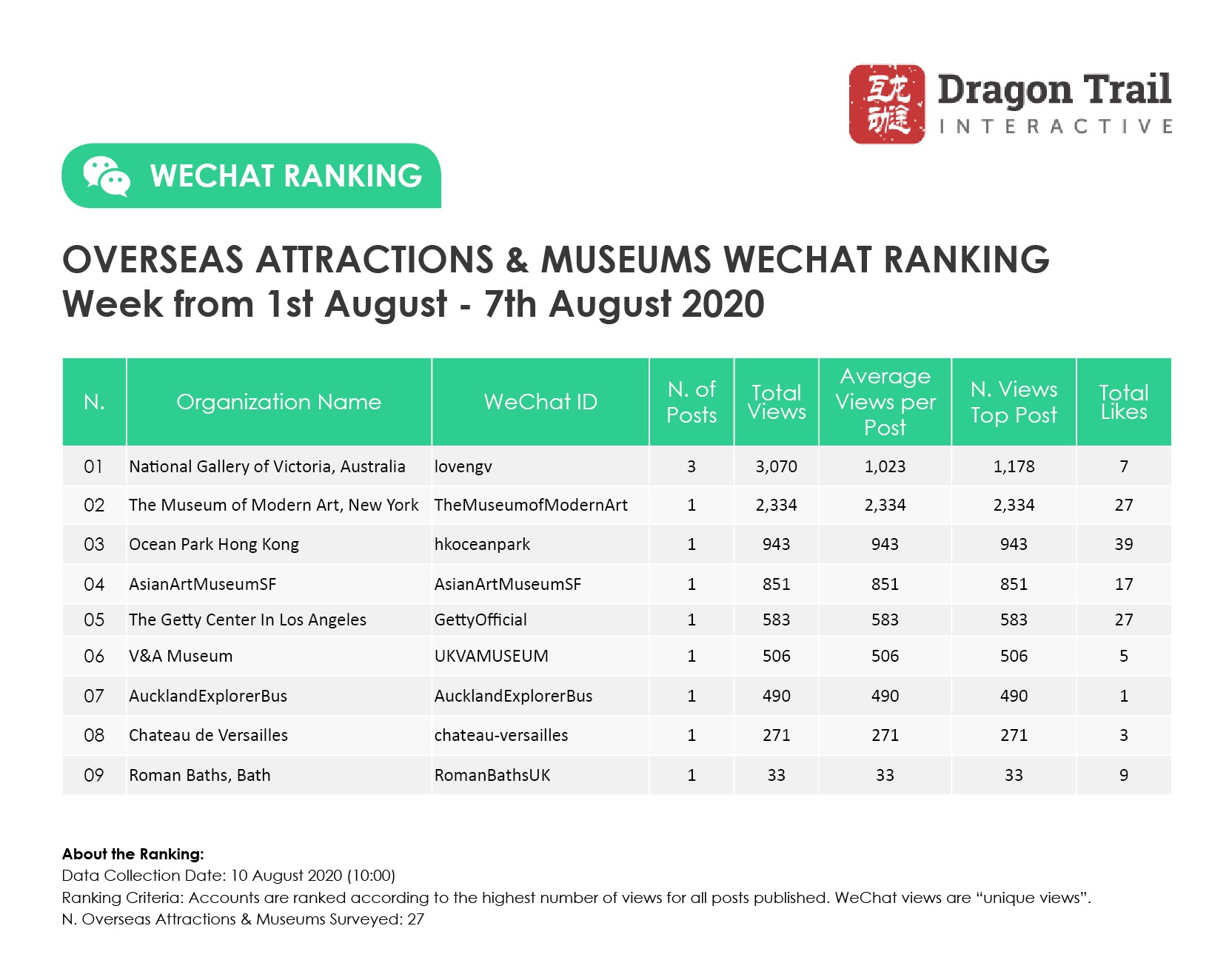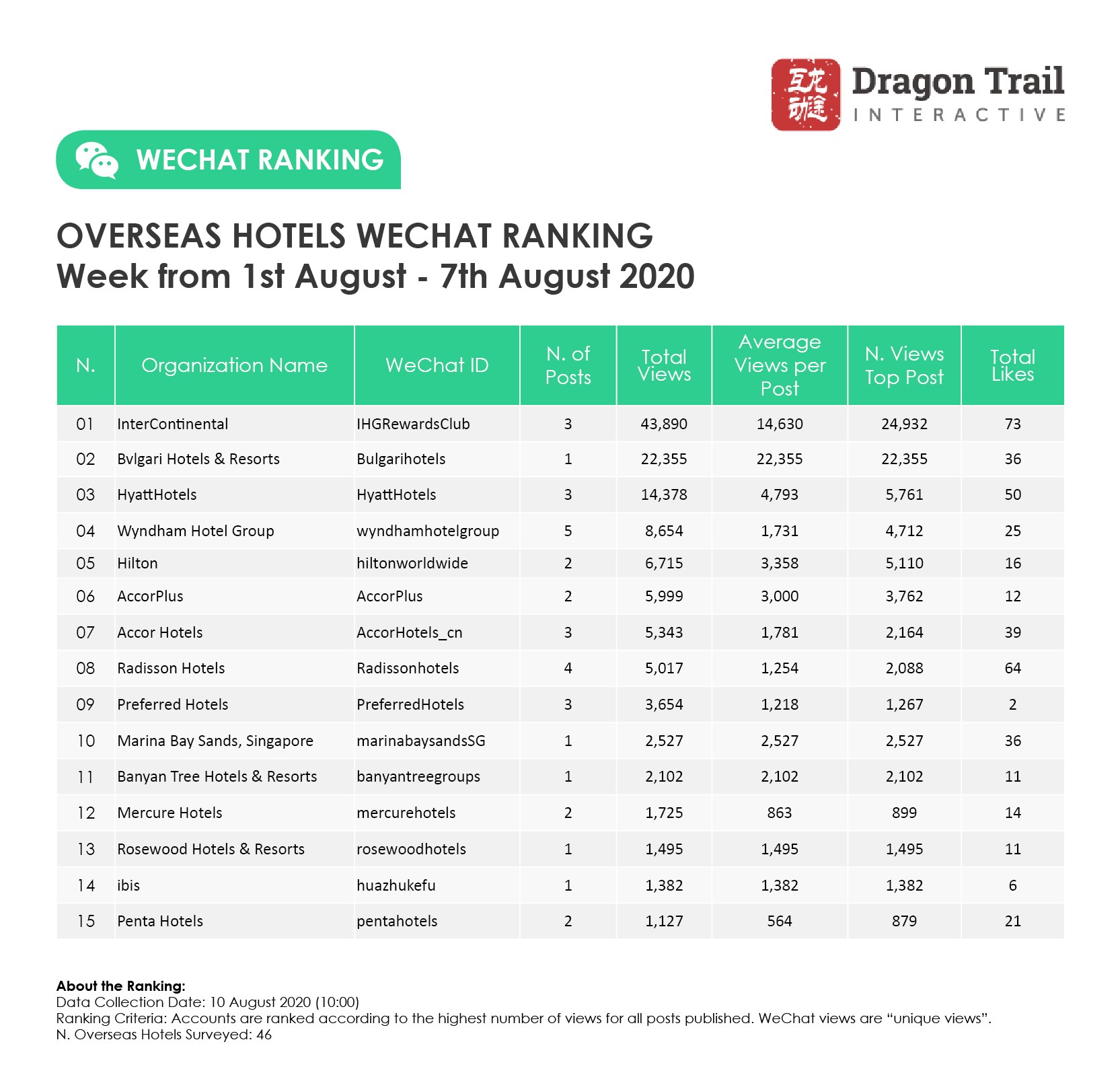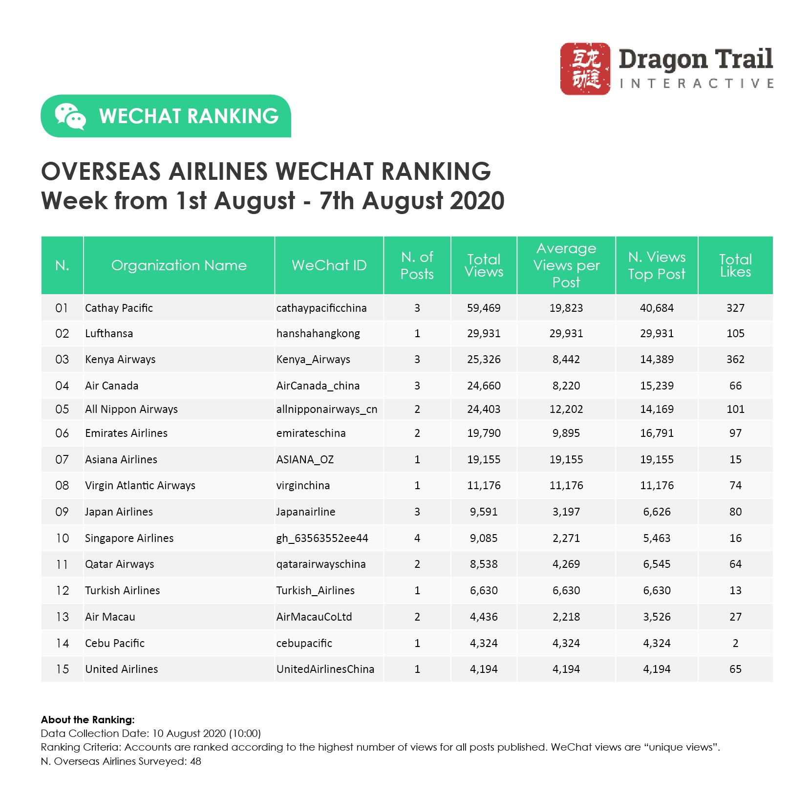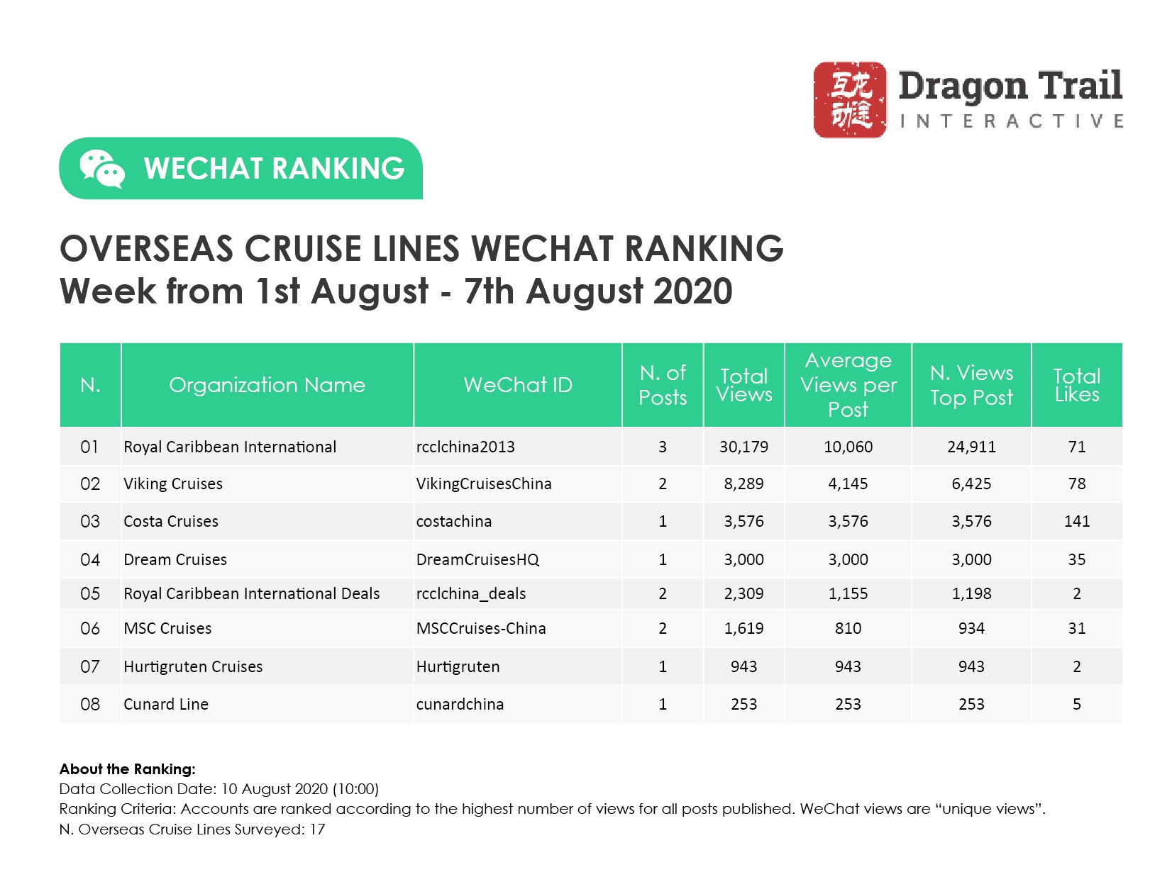 Ranking criteria: Accounts are ranked according to the highest number of views for all posts published. WeChat views are “unique views”.