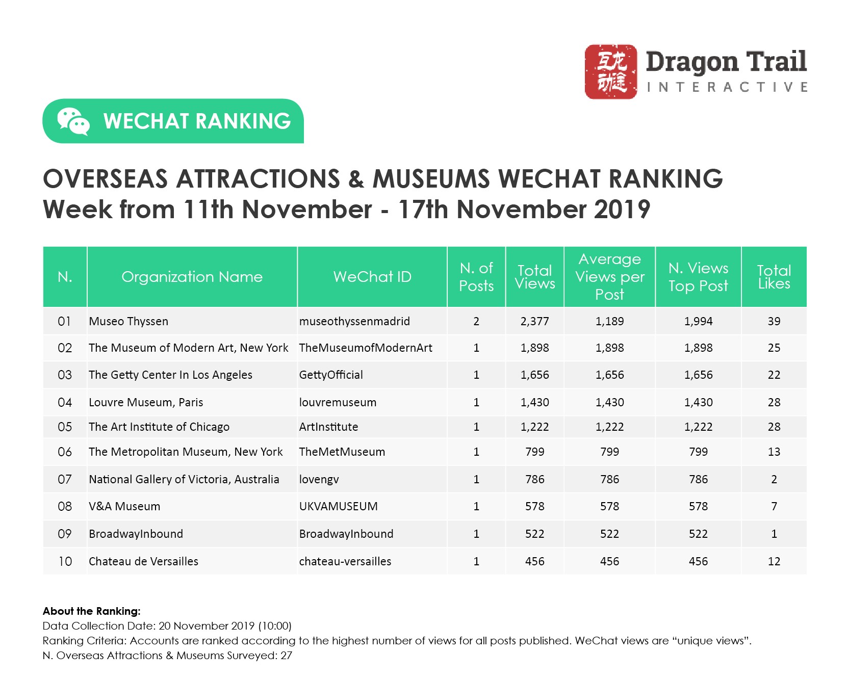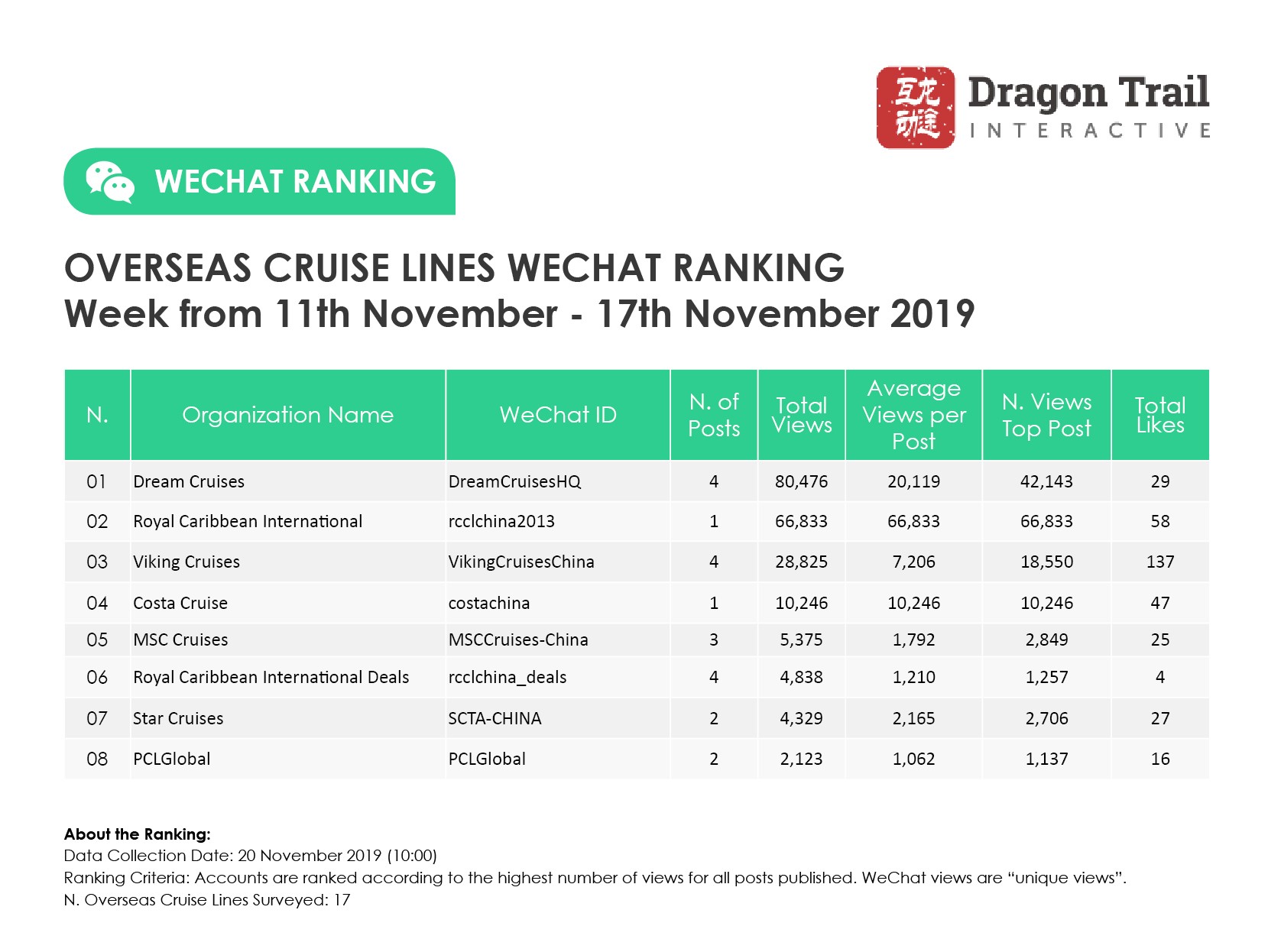 Ranking criteria: Accounts are ranked according to the highest number of views for all posts published. WeChat views are “unique views”.