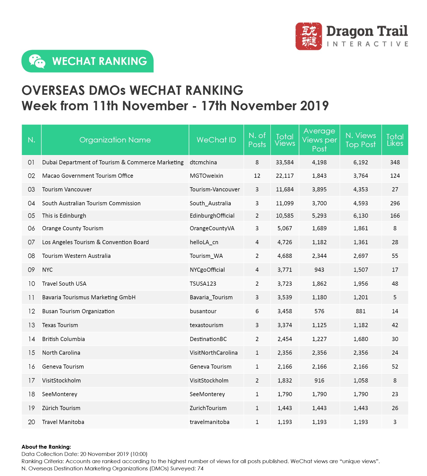 About the data: The data is jointly collected and compiled by Dragon Trail Interactive and Dingla, a B2B travel marketing platform assisting foreign organizations build long term travel trade relationships in China.