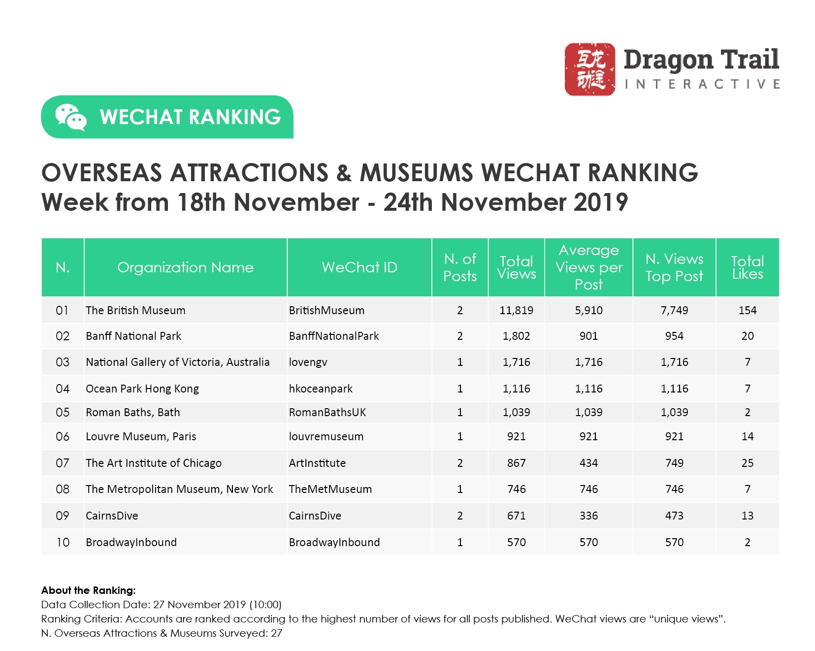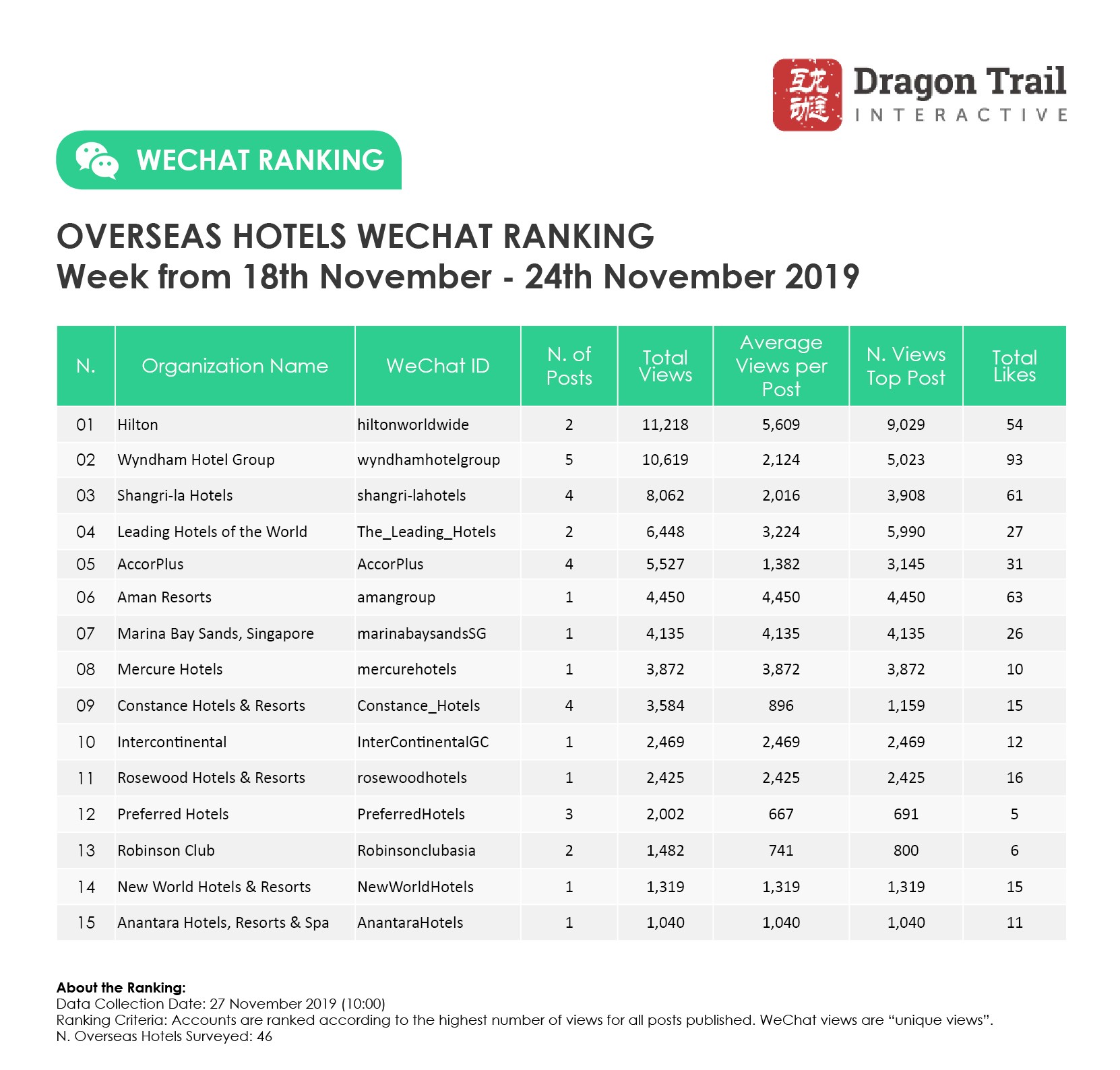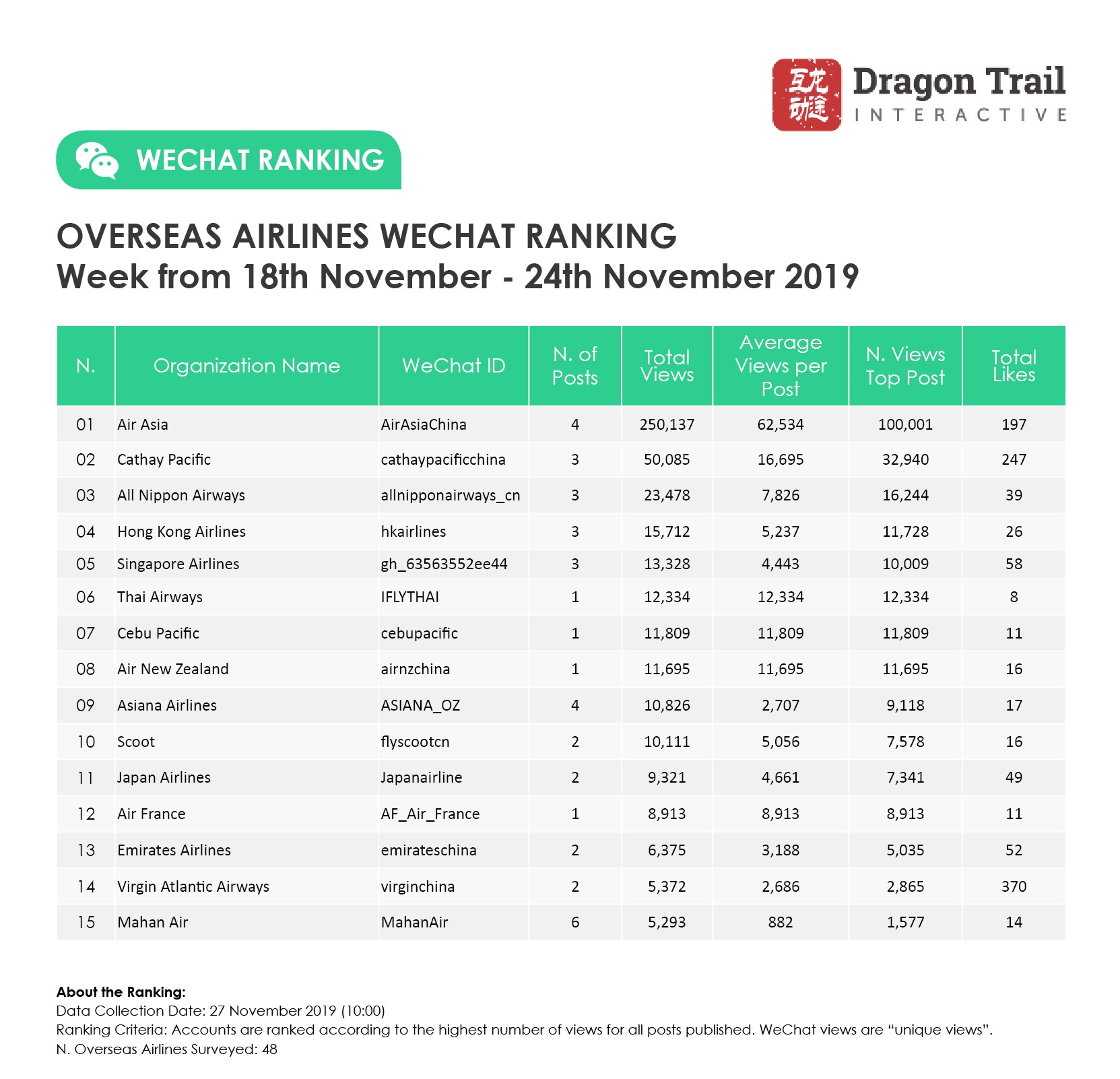 Ranking criteria: Accounts are ranked according to the highest number of views for all posts published. WeChat views are “unique views”.