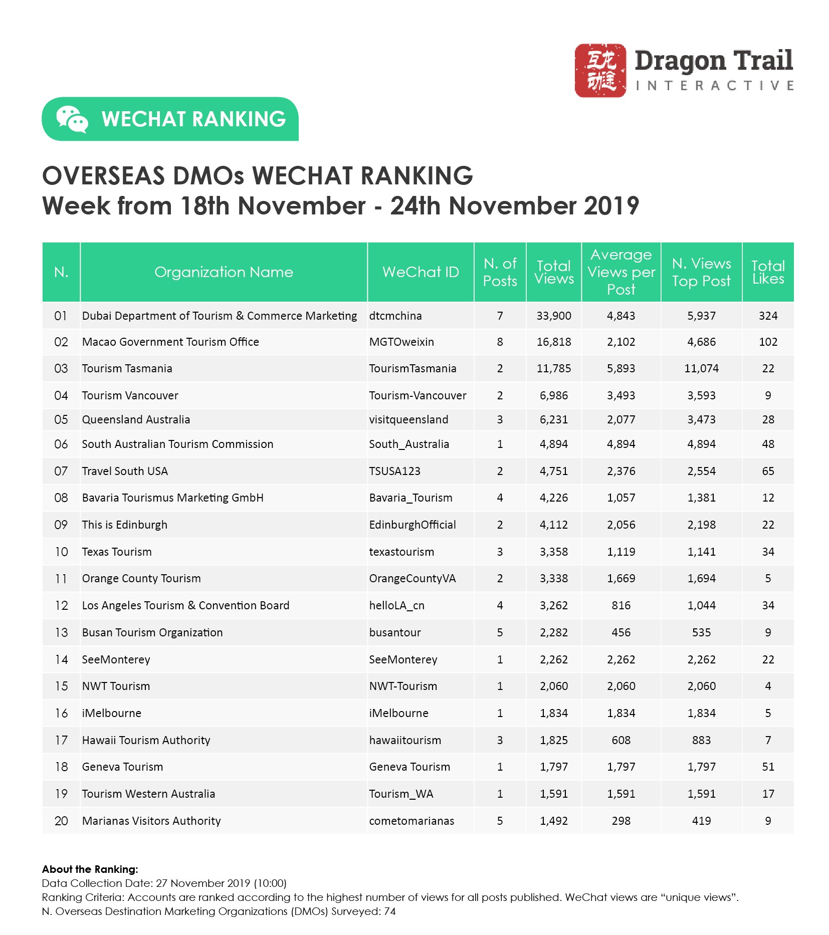 About the data: The data is jointly collected and compiled by Dragon Trail Interactive and Dingla, a B2B travel marketing platform assisting foreign organizations build long term travel trade relationships in China.
