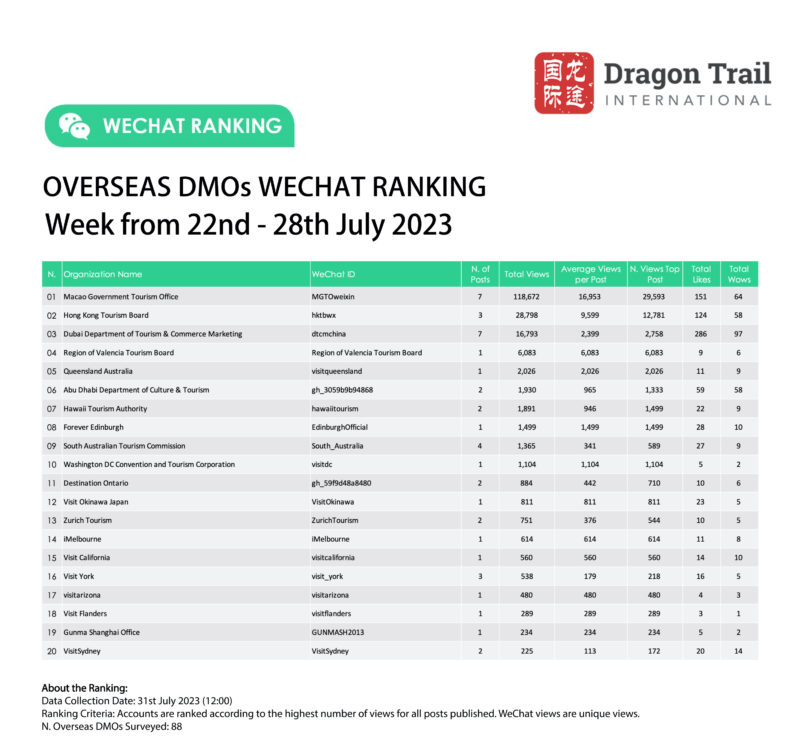 Ranking criteria: Accounts are ranked according to the highest number of views for all posts published. WeChat views are “unique views”.