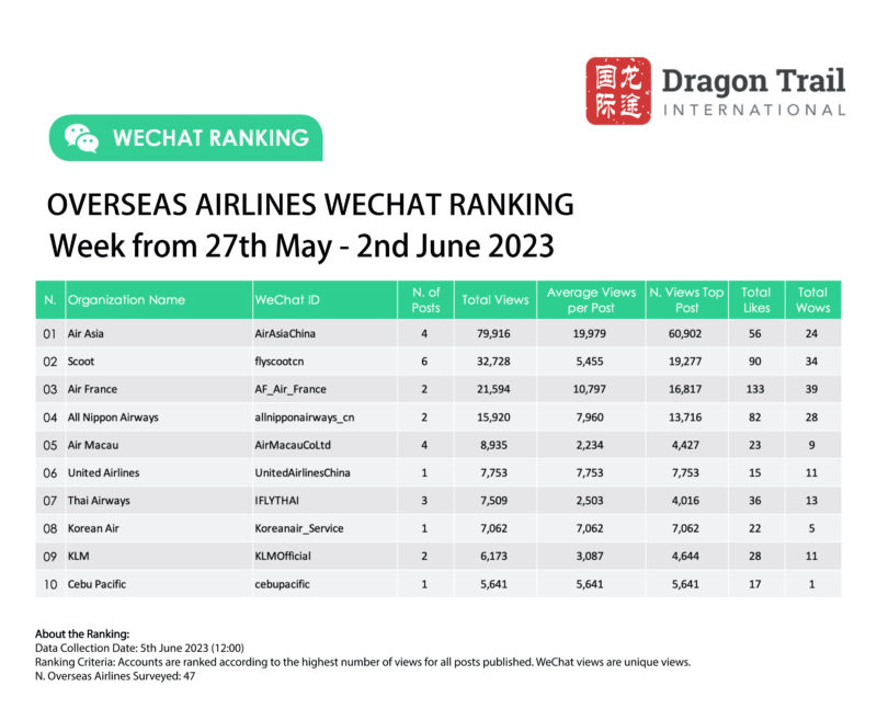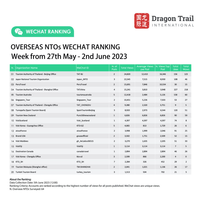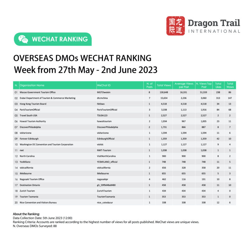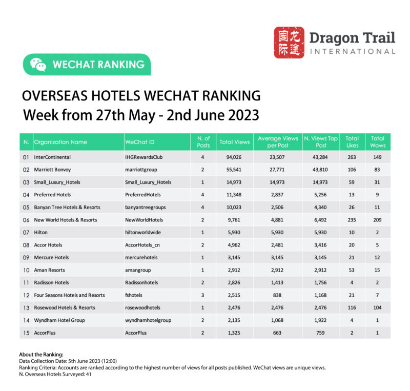 Ranking criteria: Accounts are ranked according to the highest number of views for all posts published. WeChat views are “unique views”.