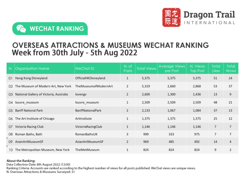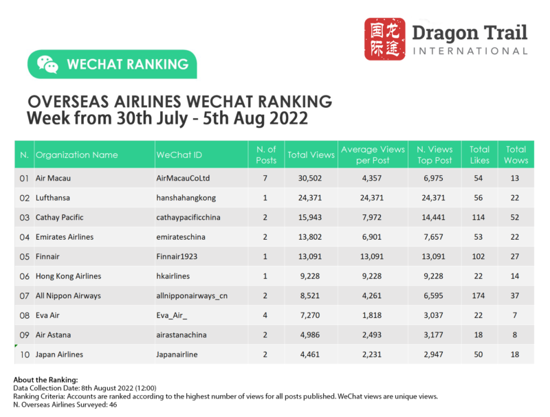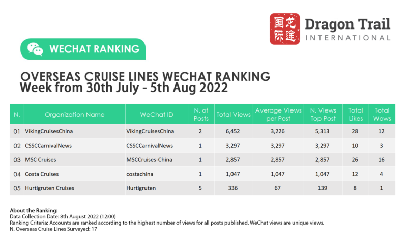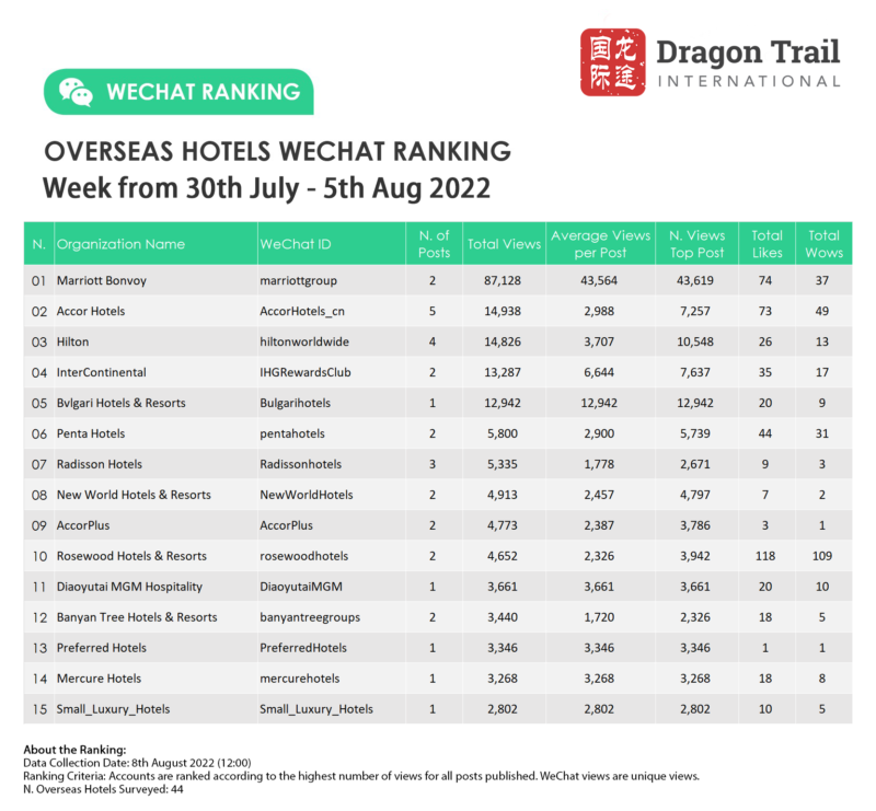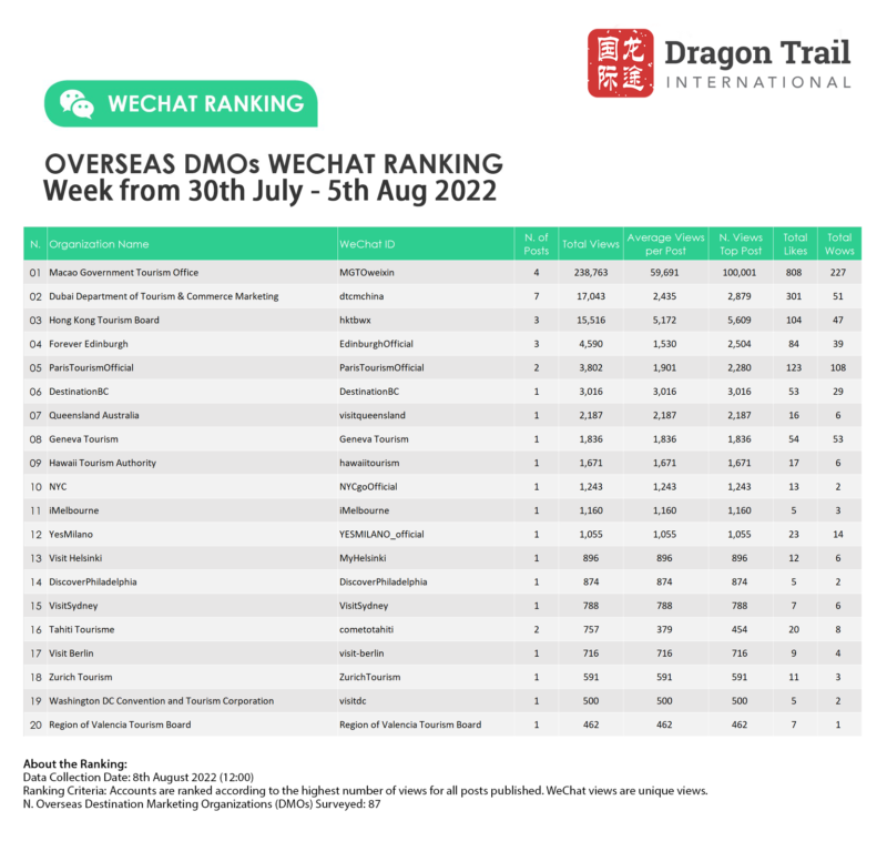 Ranking criteria: Accounts are ranked according to the highest number of views for all posts published. WeChat views are “unique views”.