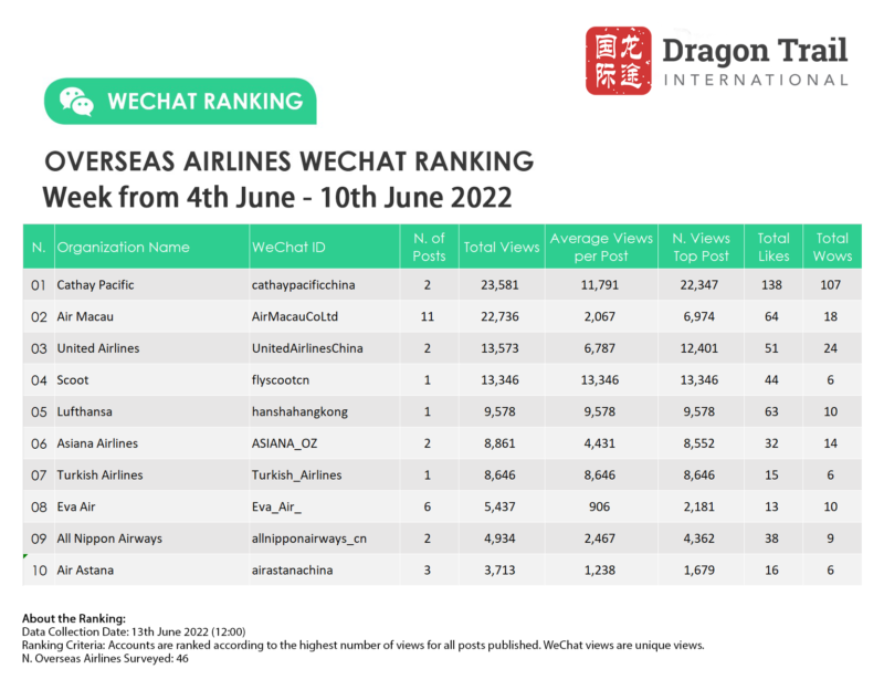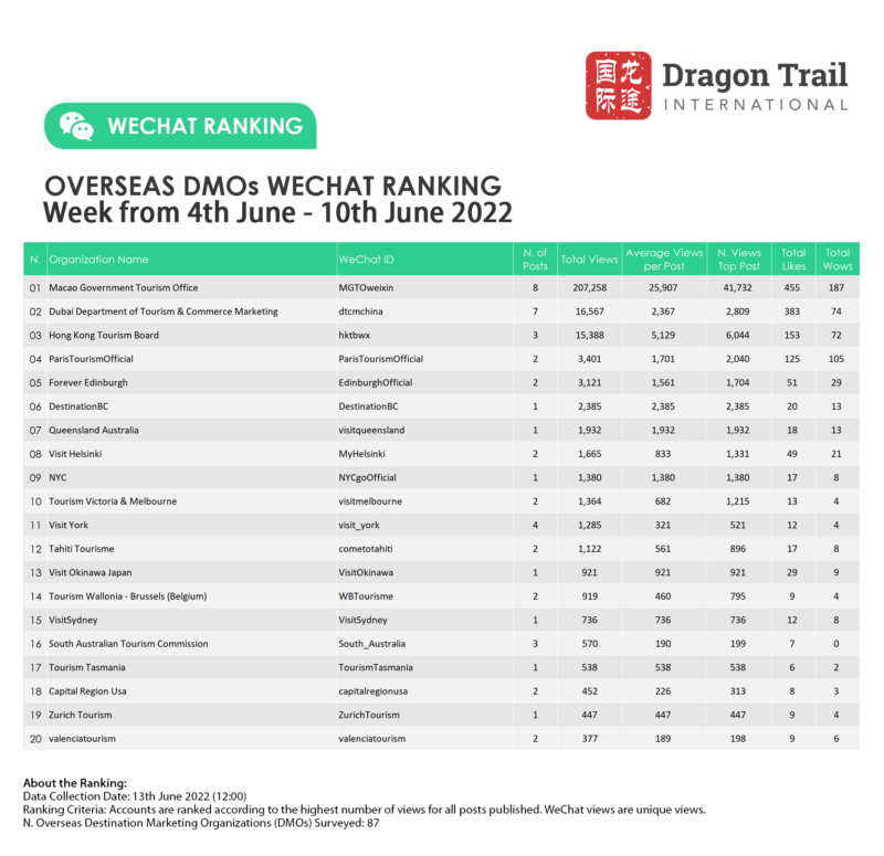 Ranking criteria: Accounts are ranked according to the highest number of views for all posts published. WeChat views are “unique views”.