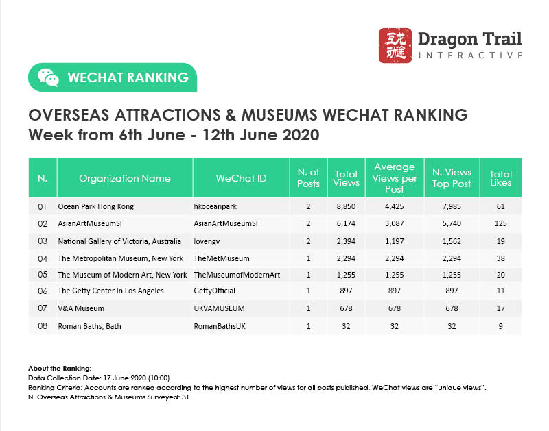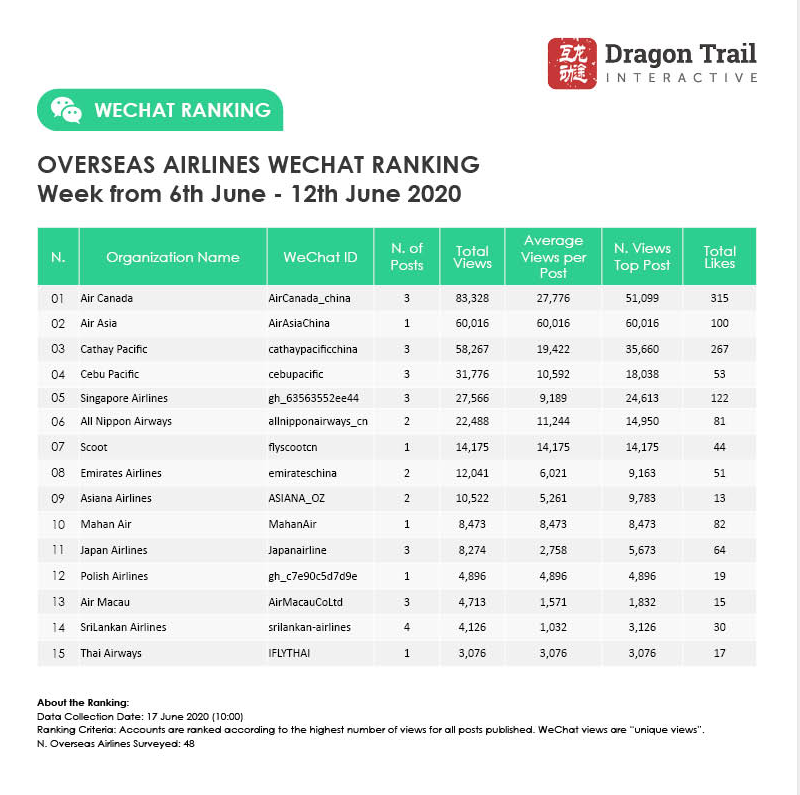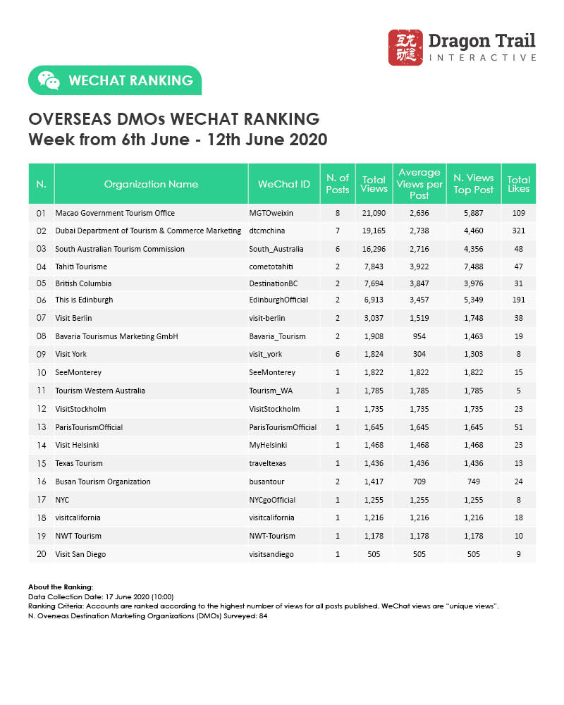 Ranking criteria: Accounts are ranked according to the highest number of views for all posts published. WeChat views are “unique views”.