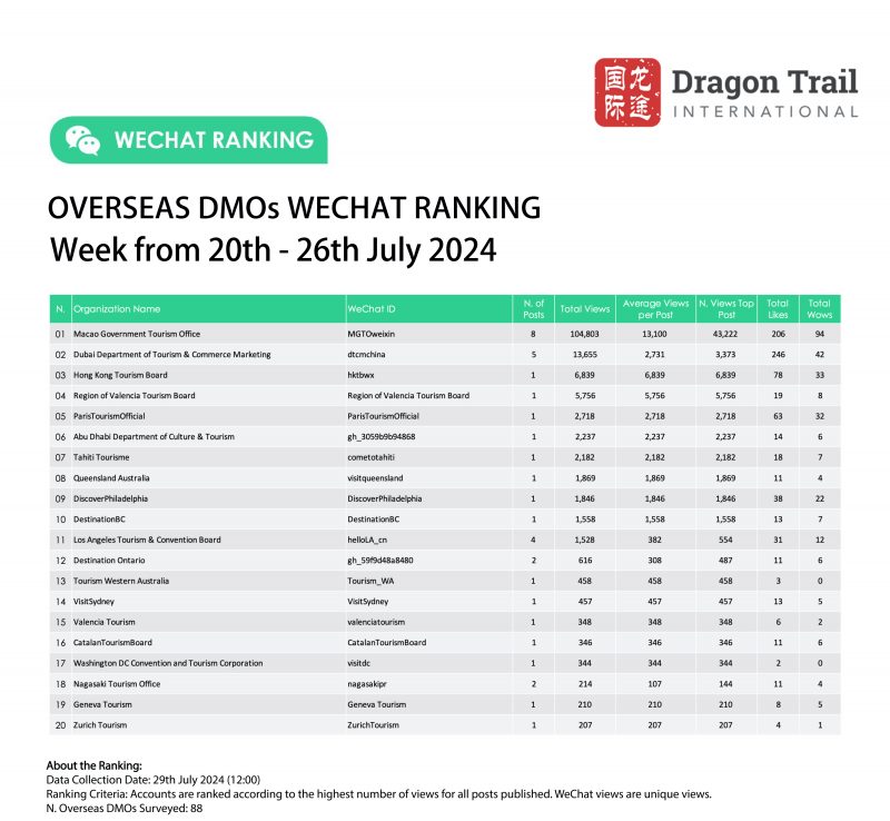 Ranking criteria: Accounts are ranked according to the highest number of views for all posts published. WeChat views are “unique views”.