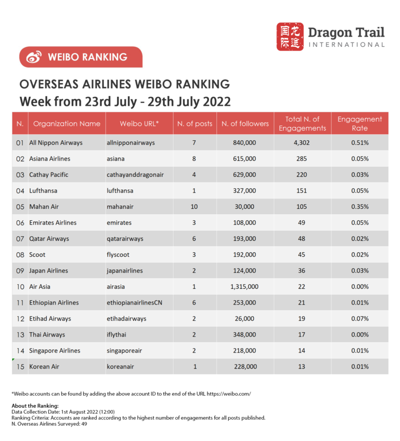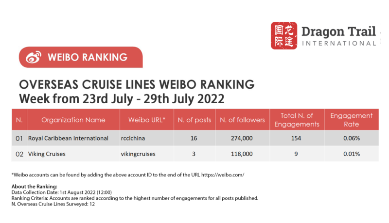 *Only two international cruise lines posted on Weibo this week