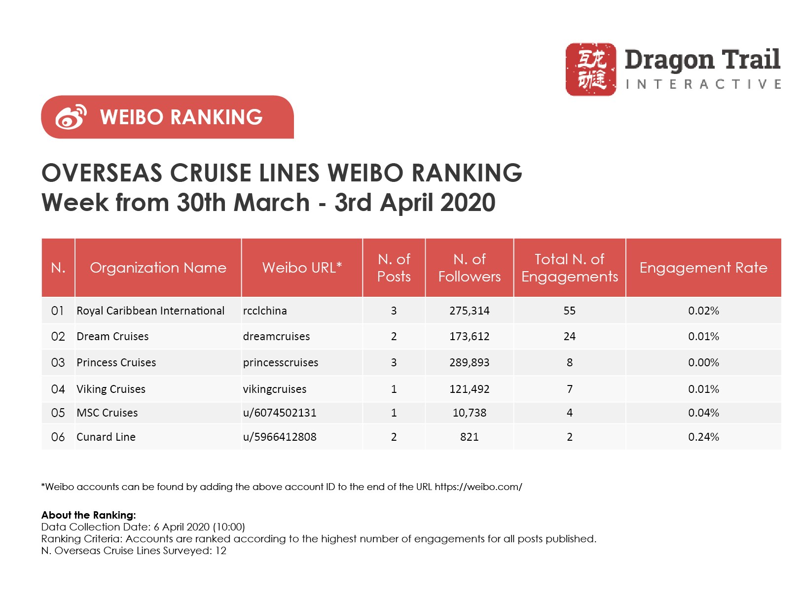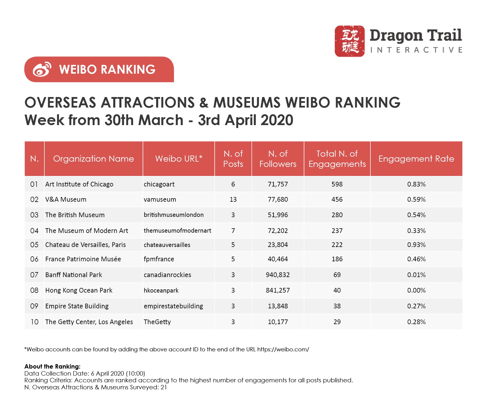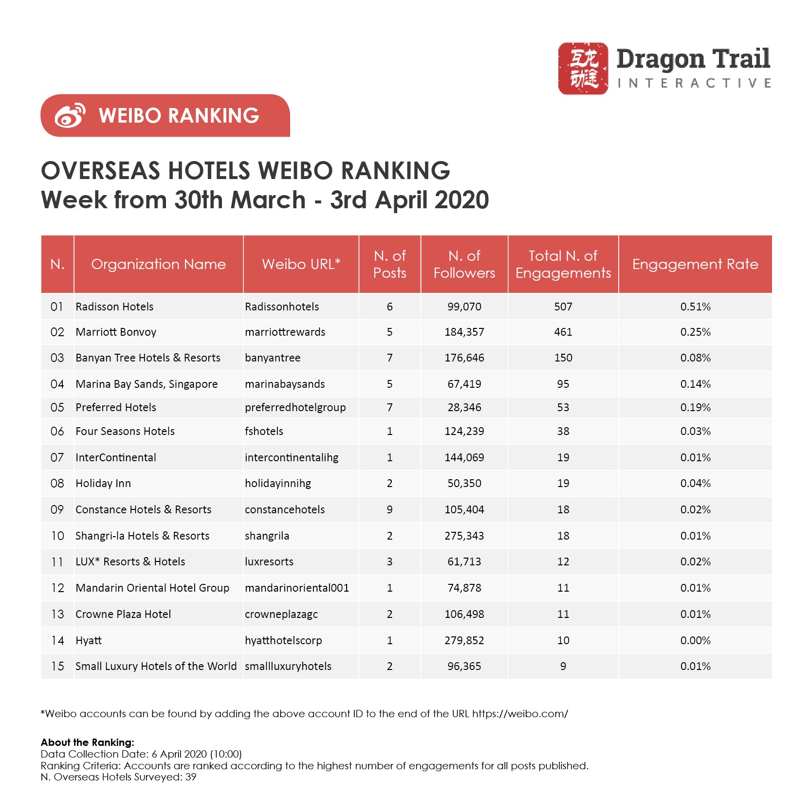Ranking criteria: Accounts are ranked according to the highest number of engagements for all posts published.