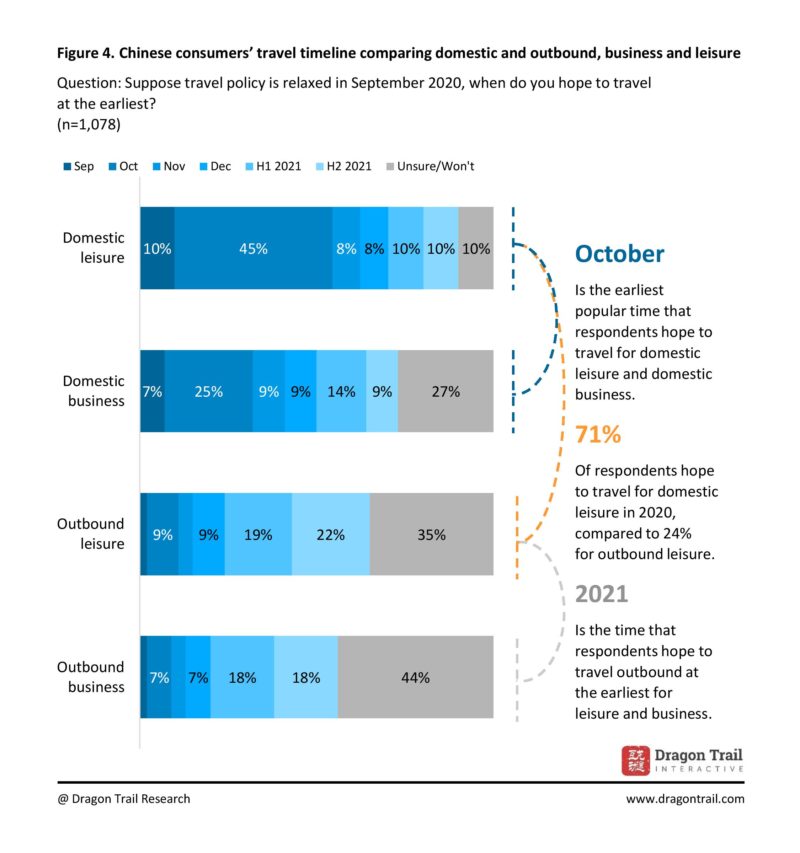 Dragon Trail Research’s September 2020 Chinese Consumer Travel Sentiment Report examines Chinese consumers’ plans and preferences for both domestic and overseas travel, leading barriers to and incentives for travel, and the top digital channels used for travel information and booking.